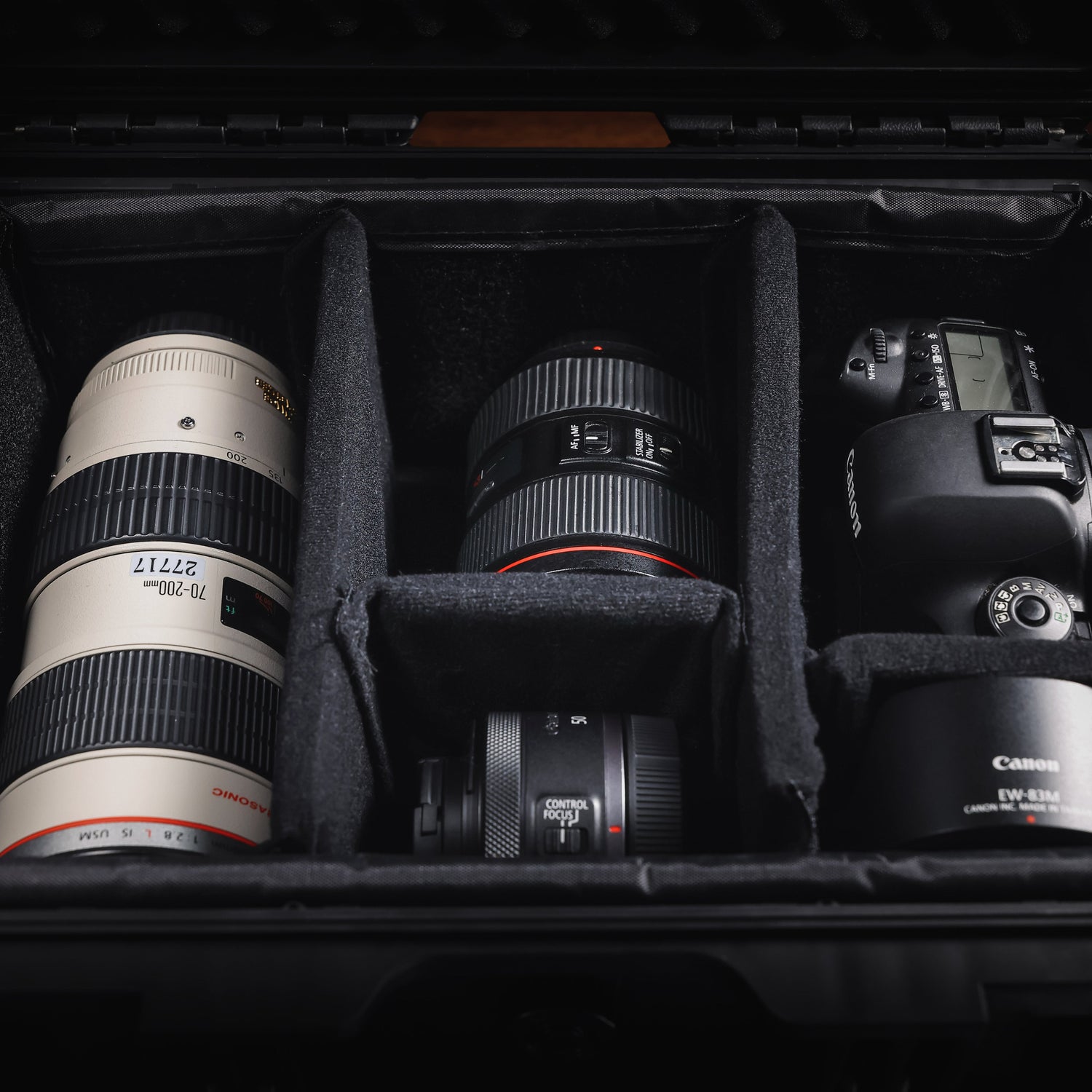 ✔ Customizable Storage – Reconfigurable dividers adapt to different camera and lens sizes